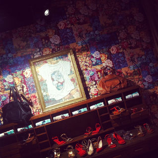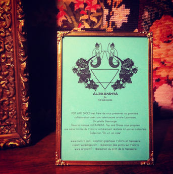 Photos des réalisations effectuées pour la boutique Pop and Shoes, à Lyon : Logo, peintures au sol, fresque murale, customisation piano et étoile de cirque, installation sculptural, collaboration textile, création de tapisserie...